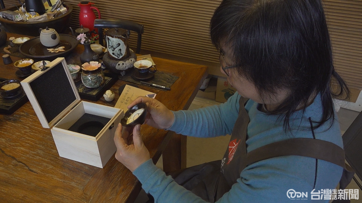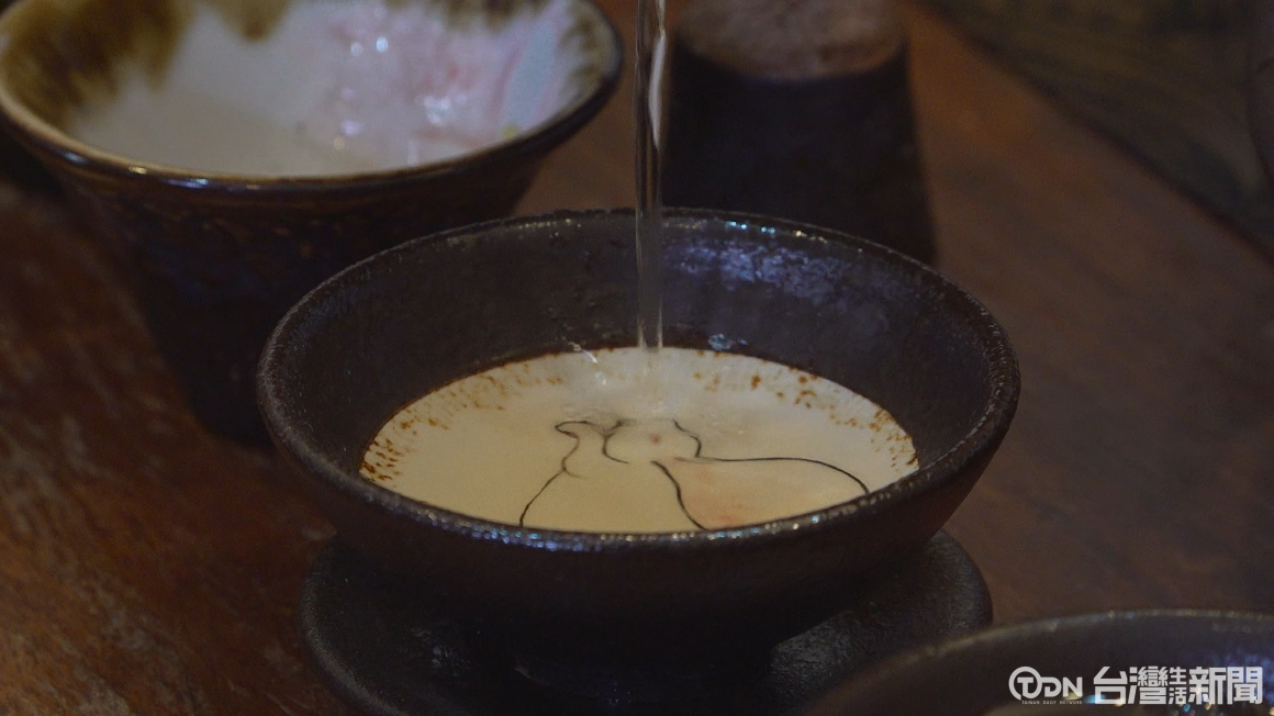 將沖泡好的金黃色茶湯緩緩倒入杯中,仔細一看杯底喜氣吉祥的玉兔有如穿上金衣,陶藝家趙勝傑第八年推出生肖杯,今年是兔年,別具巧思的設計總讓人充滿驚喜,讓大家好運一整年。