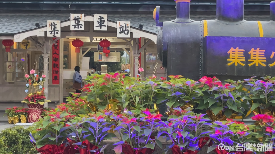 ▲集集鎮長吳大村特地增加了500盆的冰火聖誕紅來增加喜慶感/記者金芸亘攝