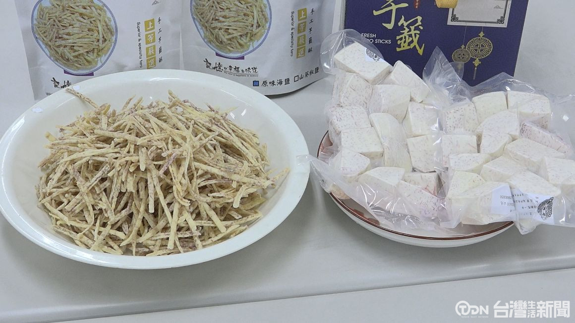 為協助拓展農產銷路,大甲德化社區除了採購當地新鮮芋頭,製作成芋頭粿、芋頭米粉湯等,供社區長輩享用外,還協助媒合在地加工廠,製作成冷凍芋頭角及芋頭籤脆片,希望用實際行動,幫助農友度過難關。