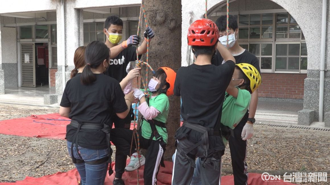 ▲這天特別舉辦攀樹、垂降等活動,希望帶給學生不同以往的教育體驗/記者 莊詩亭攝