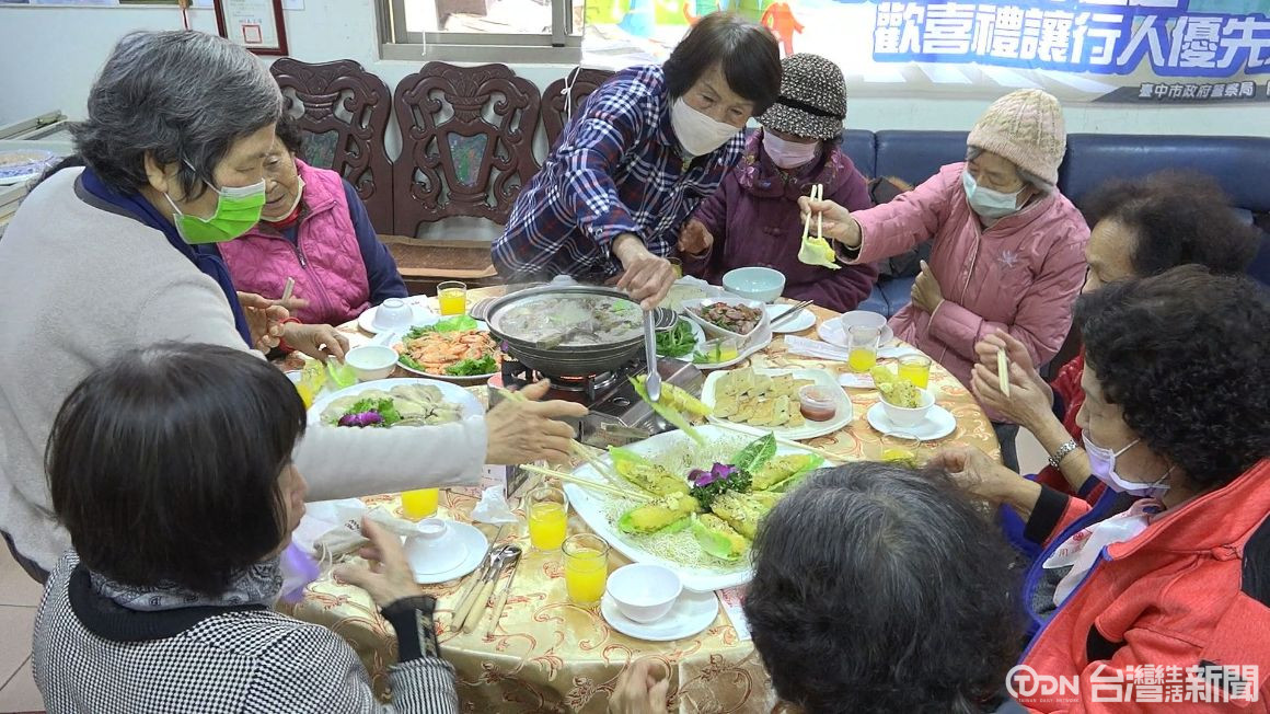 ▲沙鹿公明里舉辦圍爐活動,邀請里內獨居及弱勢長者吃團圓飯/記者 莊詩亭攝