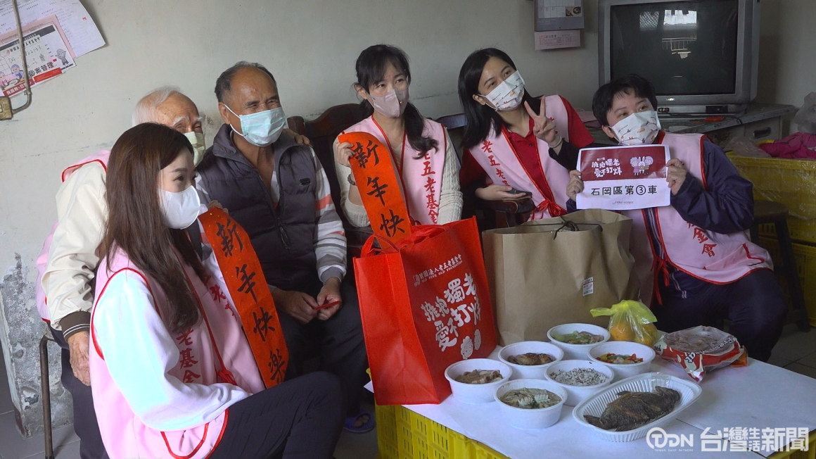 不少志工帶著小朋友一起來參與,讓長輩感受到滿滿溫情。居住在石岡區的陳伯伯,因為先天視神經退化近乎全盲,平常外出困難,這天志工們帶著年菜以及物資來訪,熱絡的問候聊天,讓他臉上笑容滿溢,也讓空盪盪的家中多了一股暖流。