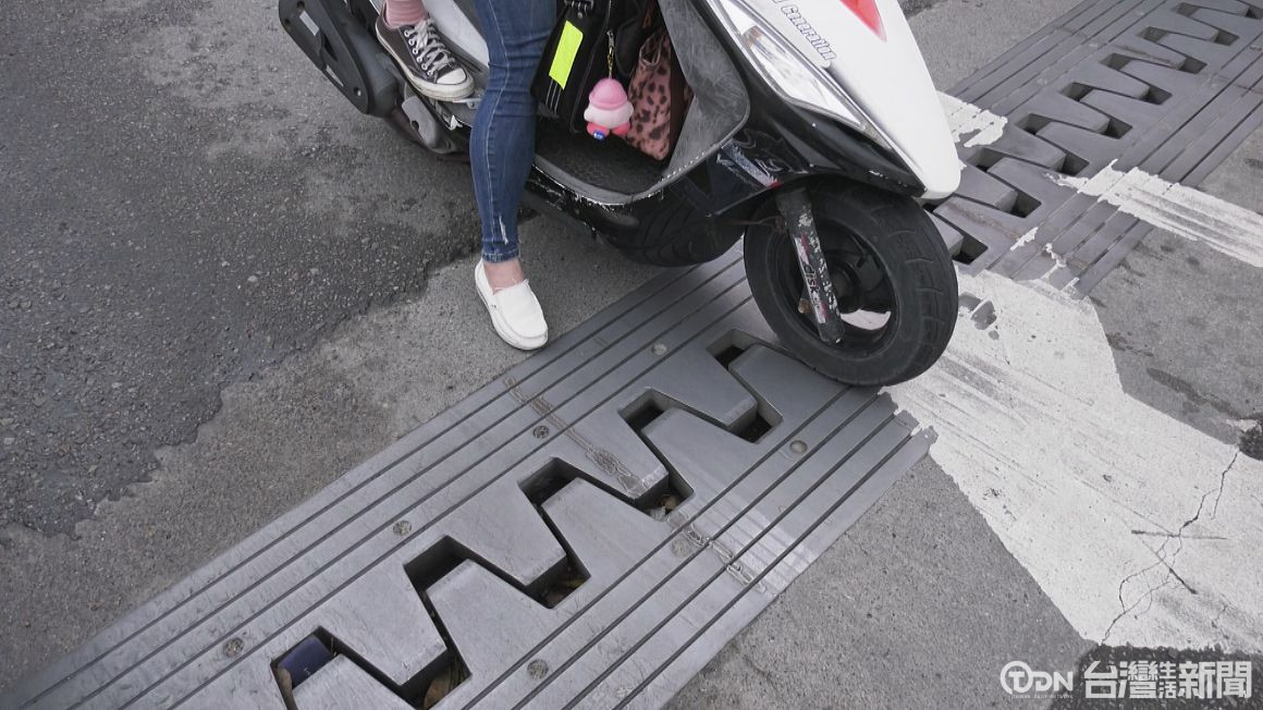 ▲伸縮縫接近停止線,許多機車族在停等紅燈、或是綠燈起步時容易打滑/記者 陳柏翰攝