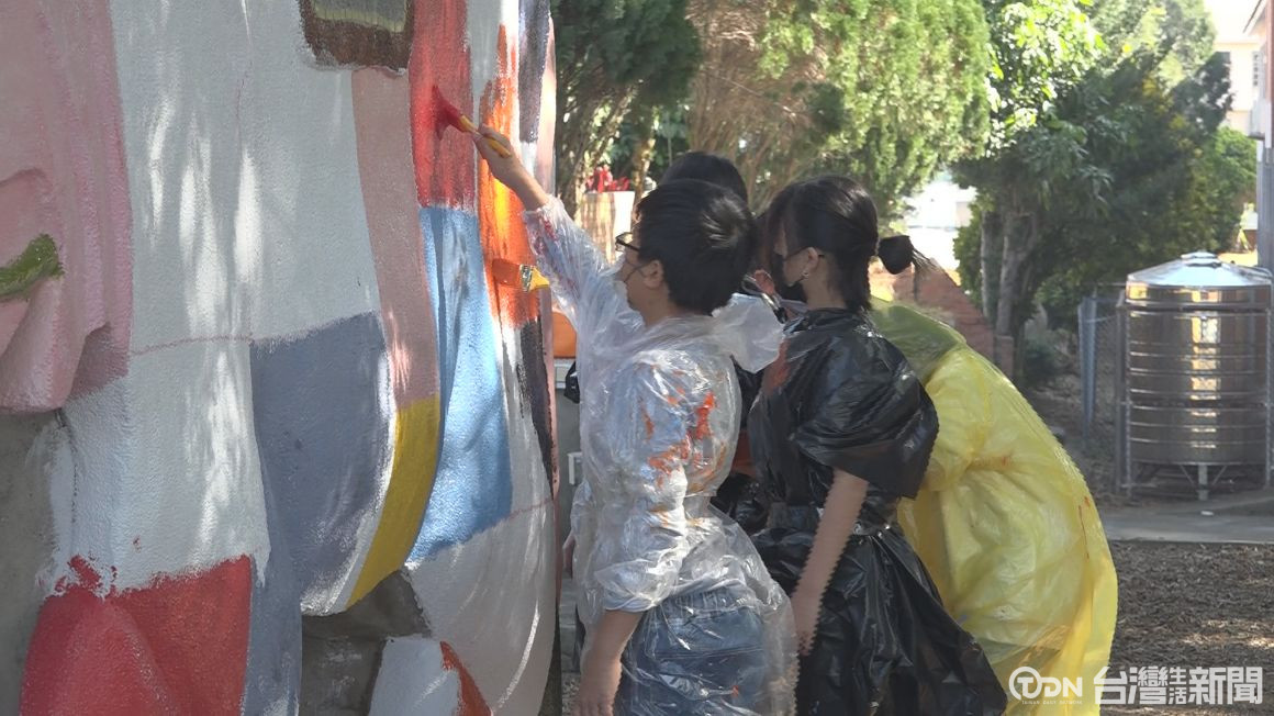 ▲小朋友第一次進行大型裝置彩繪都感到很興奮/記者李偉廷攝