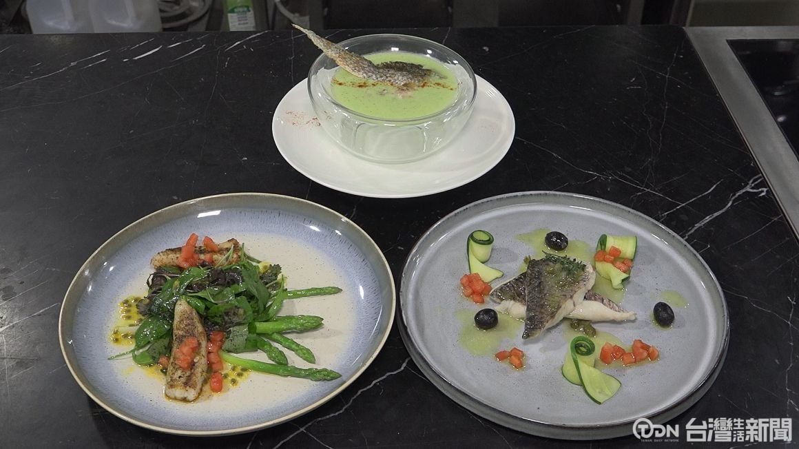 ▲弘光科大餐旅系,為推廣惜食永續觀念,特別教導學生如何充分利用一尾鱸魚,烹調出三道西式料理/記者 陳柏翰攝
