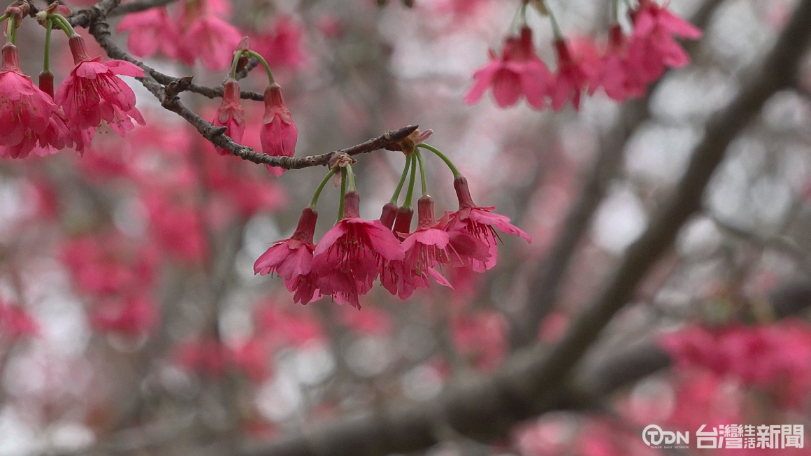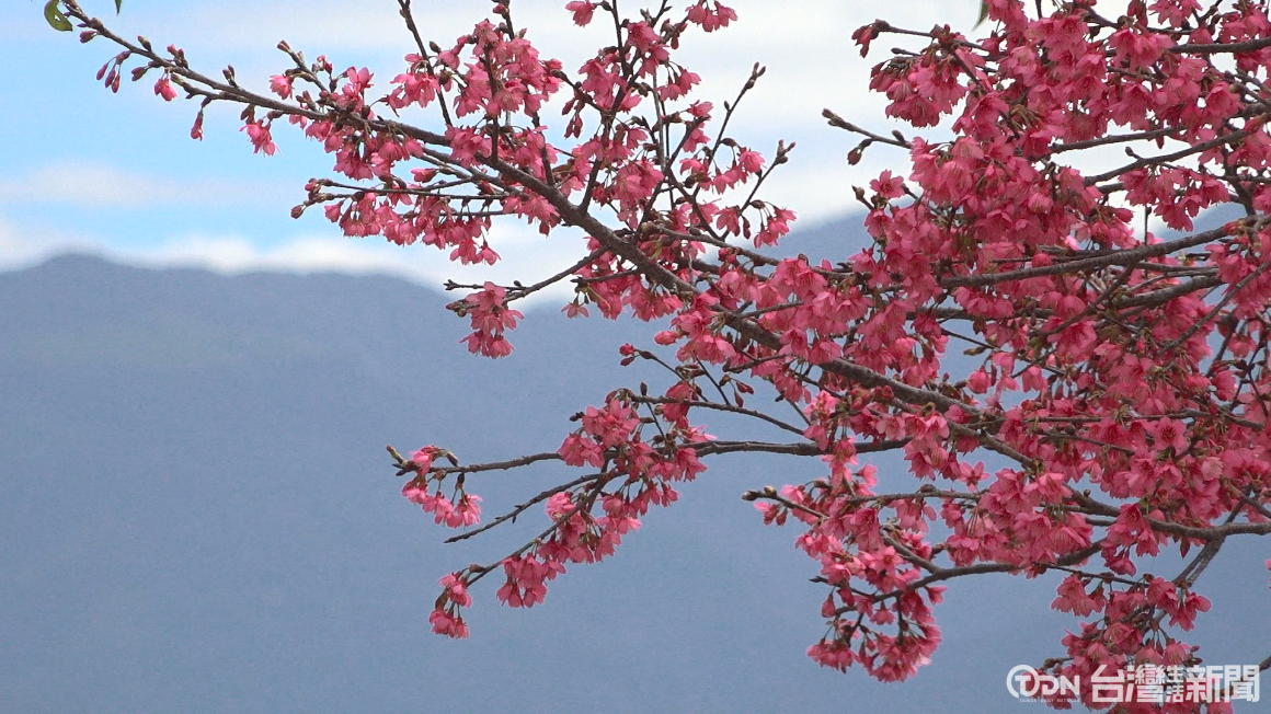 一朵朵奼紫千紅的花朵綻放,五角花瓣高掛枝頭,展現迷人姿態。春節寒流來襲,低溫加乘作用之下,讓新社地區的櫻花逐漸盛開,相當漂亮。