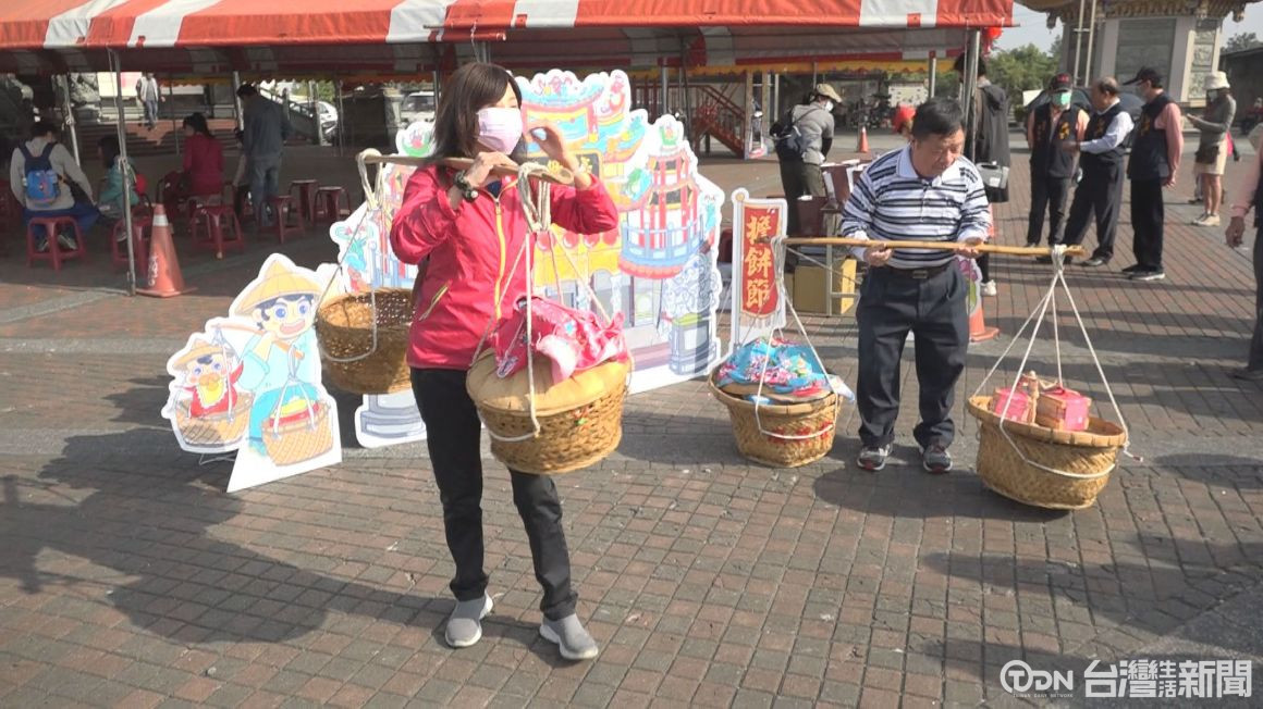 永康區公所特別策劃擔水餅文化導覽活動,讓小朋友與民眾了解永康傳統民俗擔餅文化/記者 蕭建緯攝