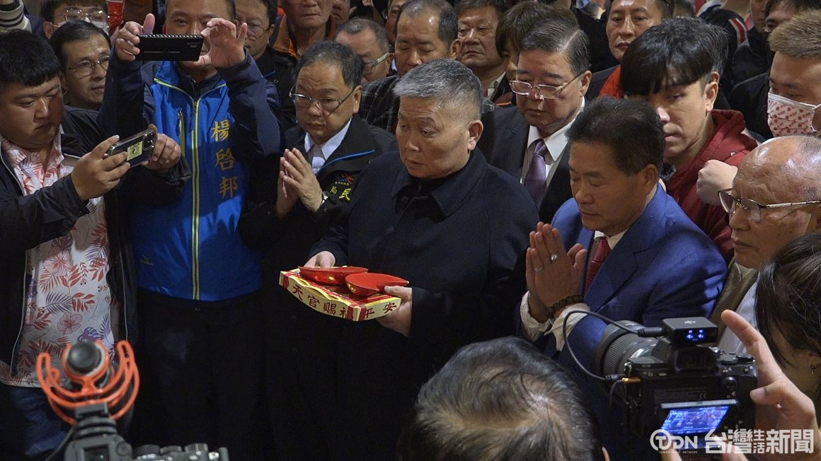 ▲由董事長顏清標率領全體董監事, 一同向媽祖擲筊請示/記者 陳柏翰攝