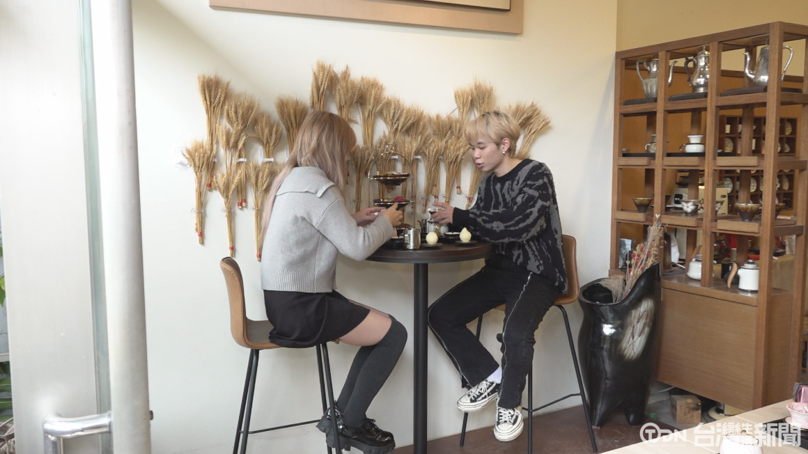 ▲一邊泡咖啡、品茗,一邊享用茶點,別有一番風情,甜蜜度過佳節/記者 陳昭安 莊詩亭攝