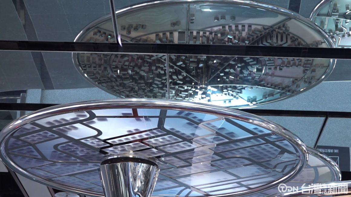 ▲「運轉城市」裝置藝術作品的圓盤輪流轉動,就像車站客運來來去去一樣/記者 李晉仰攝