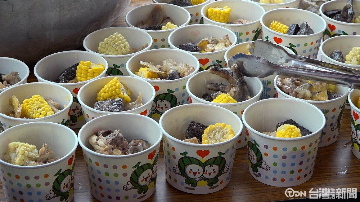 ▲這是大里大新福德祠在頭牙這天準備給民眾的平安餐/記者 賴秋峰攝