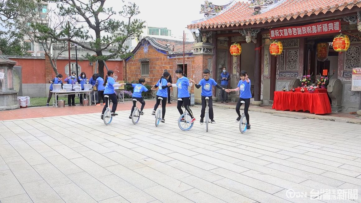 ▲德化國小獨輪車隊展現技術高超的獨輪車演出/記者 陳柏翰攝