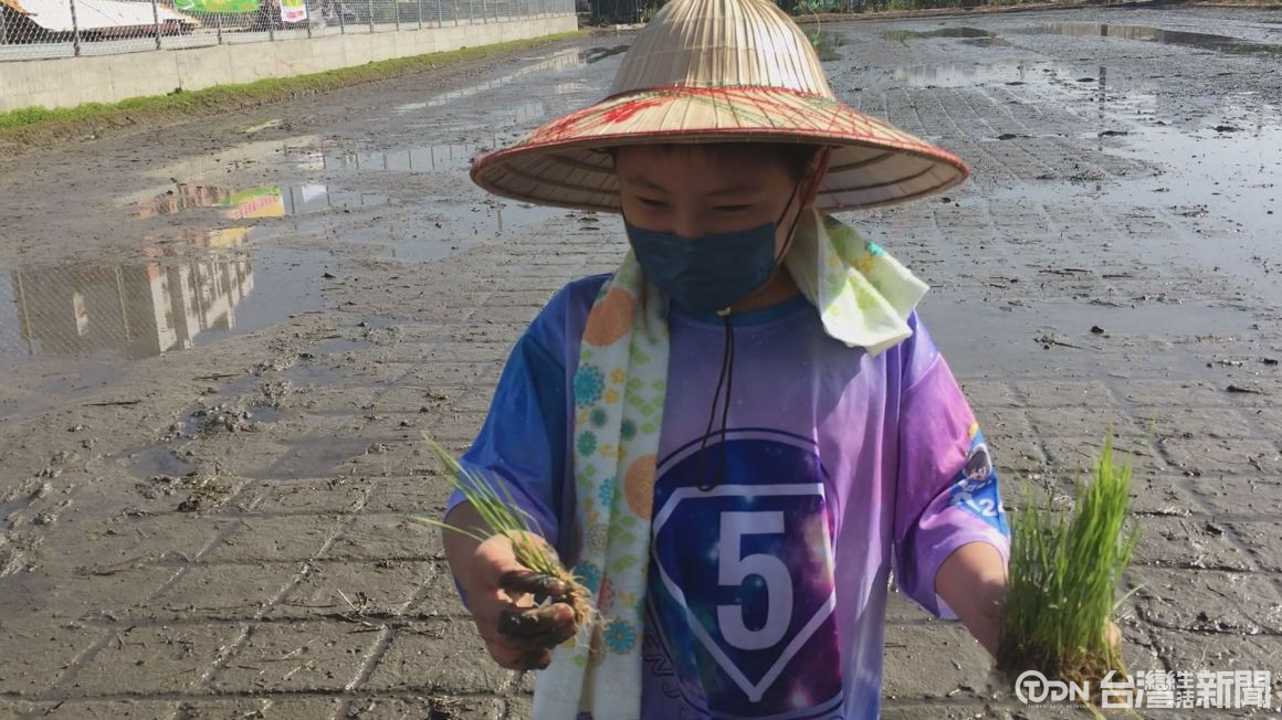 推廣食農教育,大里區農會帶領美群國小學童下田體驗插秧,藉此體驗農夫刻苦耐勞的精神,還有來自南非的英語老師Andy也來體驗,他表示,在家鄉沒種過水稻,第1次下田體驗插秧覺得相當新鮮。