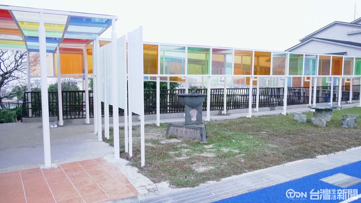 ▲大甲區東陽國小最新啟用的彩虹廊道,獨特的設計巧思深獲師生好評/記者 陳柏翰攝