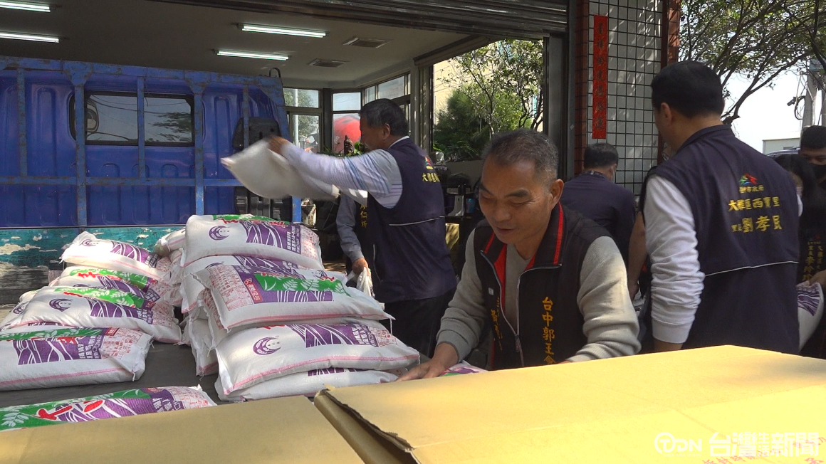 眾人合力將一包包白米搬上貨車,重達1.3公噸的白米,台中郭王會主祀保安廣澤尊王,為了發揚其救世濟民的精神,平常對於地方公益不遺餘力,這一次在地方民代的牽線之下,將捐贈給大雅里、橫山里、西寶里、大楓里等4個關懷據點及大雅派出所。