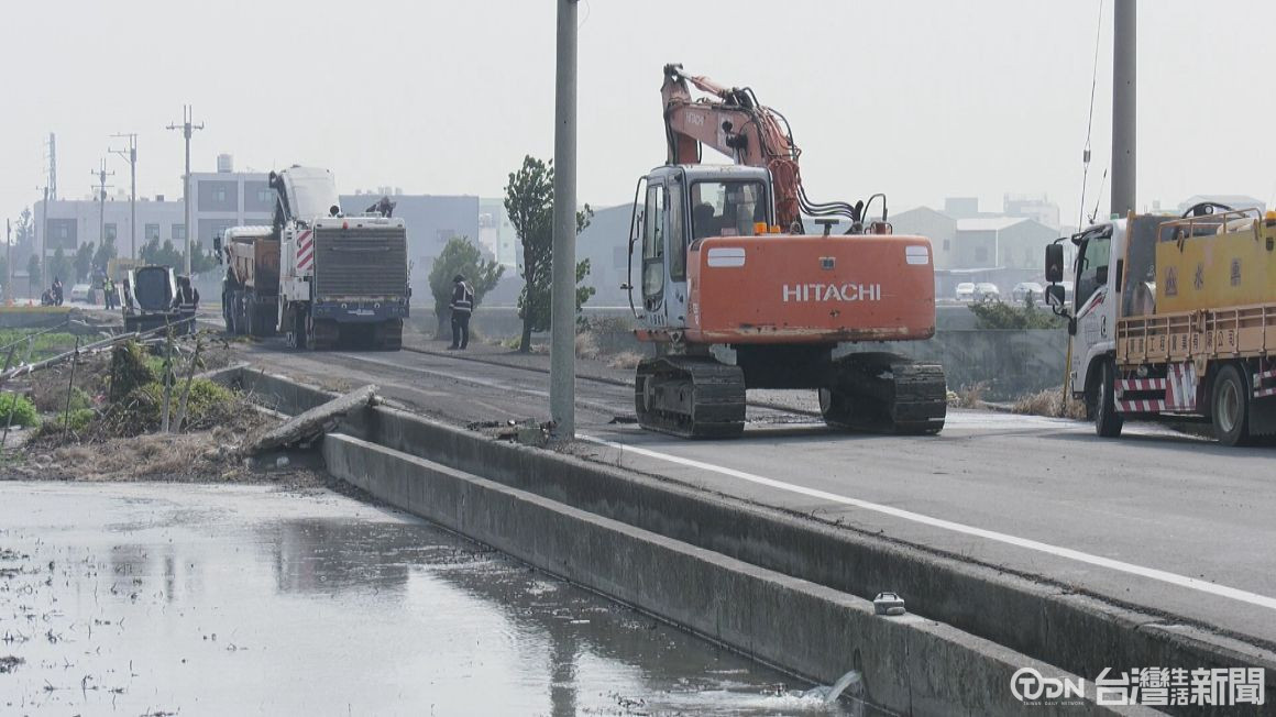 ▲工程人員操作大型機具,要將道路重新刨鋪/記者 陳柏翰攝