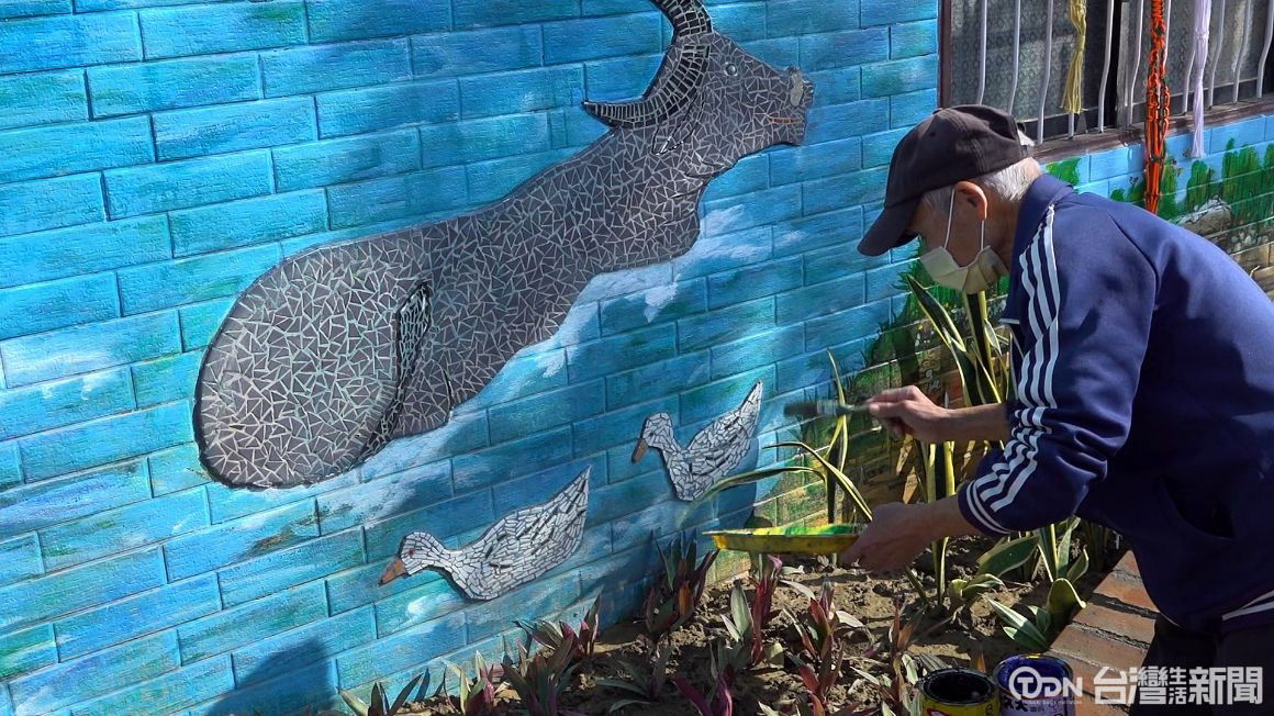 ▲馬賽克拼貼彩繪重現早期農村景緻特色/記者 賴秋峰攝