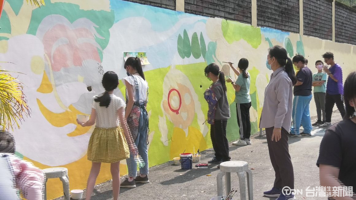 ▲漳和國小落實滿感教育彩繪社區外牆/記者李偉廷攝