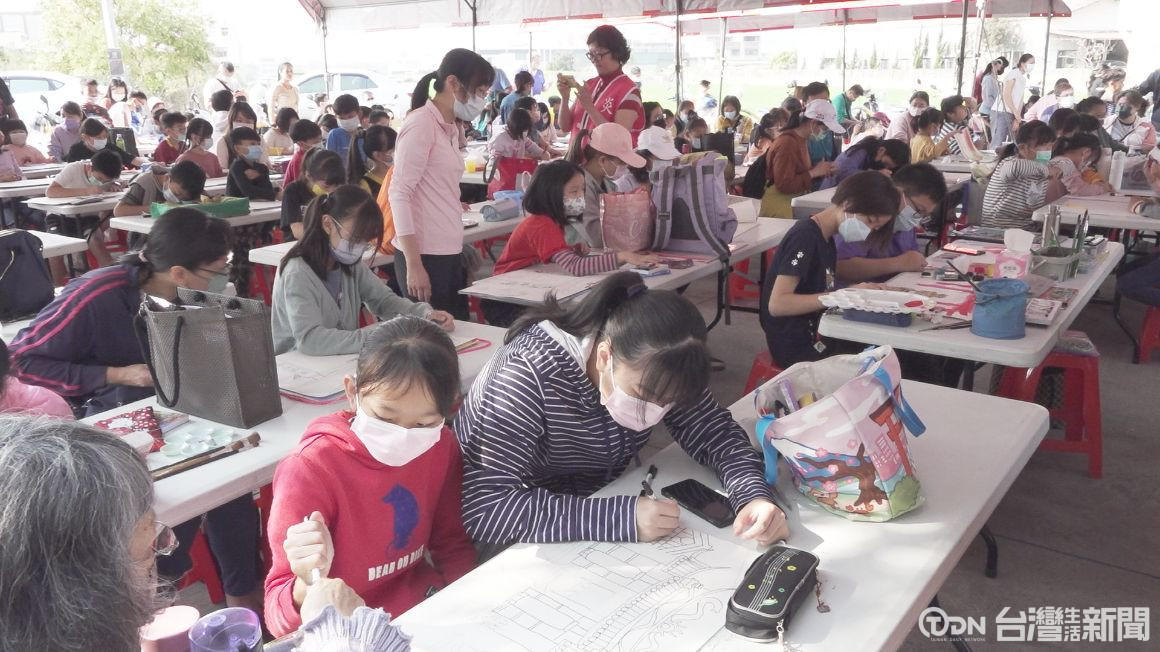▲圖為草屯鎮重要的信仰中心紫微宮,每年舉辦兒童寫生比賽,這次也有超過五百位親子共同參與/記者林妤昕攝