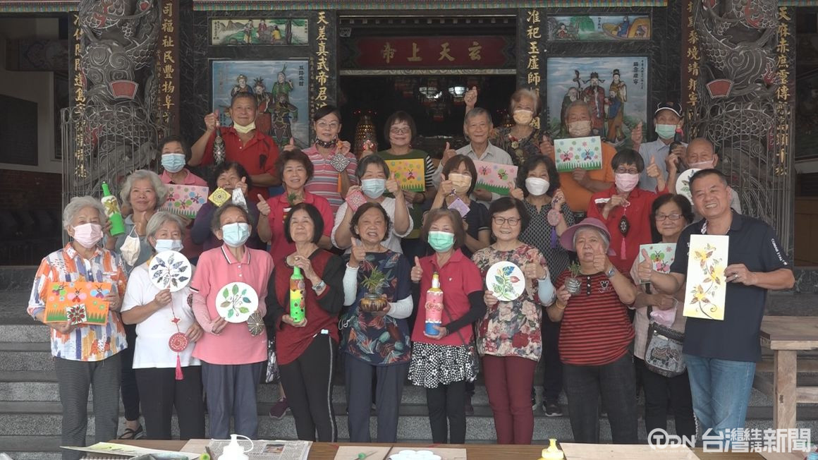 ▲圖為南投縣善福關懷協會,為老人家開設手工創作課程,利用隨手可得的瓶子、石頭、樹葉等素材體驗/記者林妤昕攝