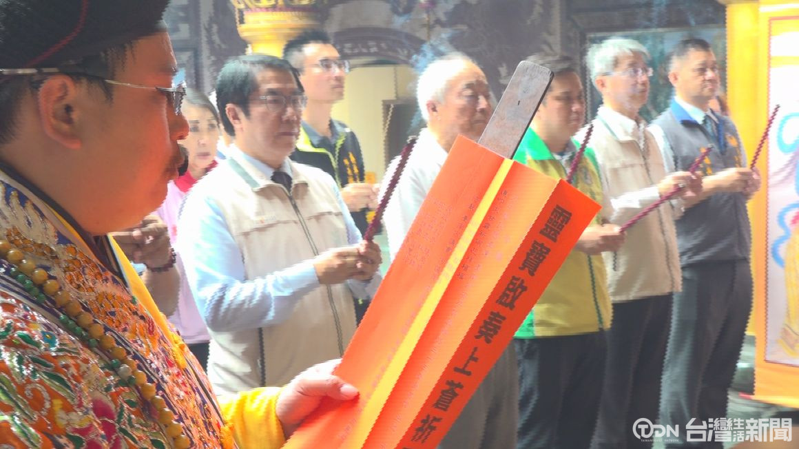 ▲臺南安平開臺天后宮今天舉辦祈雨祭典,會中依照道教的古禮祈求下雨,臺南市市長黃偉哲親臨主祭/記者 蘇英豪攝。