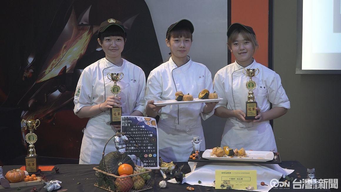 ▲圖為草屯鎮農會舉辦栗南瓜創意料理比賽,同德高中餐飲科學生組成的參賽隊伍,最後6組進行決賽/記者林妤昕攝