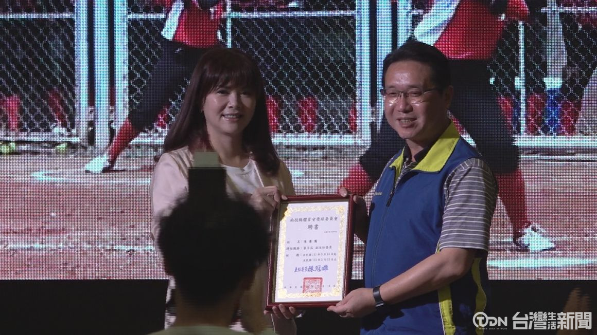 ▲南投縣各級女子壘球隊,今年是歷年來成績最好的一年,南投縣長許淑華特別頒獎表揚成績傑出的隊伍,也允諾挹注更多經費,作為選手的後盾/記者 范宏坤 攝