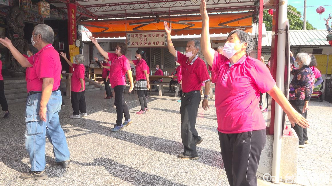 ▲阿公阿嬤跟著老師練元極舞,動作不快也不太困難,老人家都做得有模有樣/記者 熊欣儀 攝