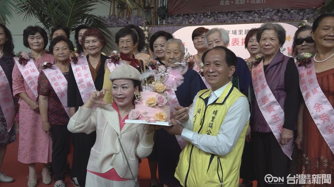 ▲埔里鎮112年度模範母親表揚活動, 埔里鎮長廖志城伉儷切蛋糕,祝福各里推薦的模範母親。/記者 范宏坤 攝