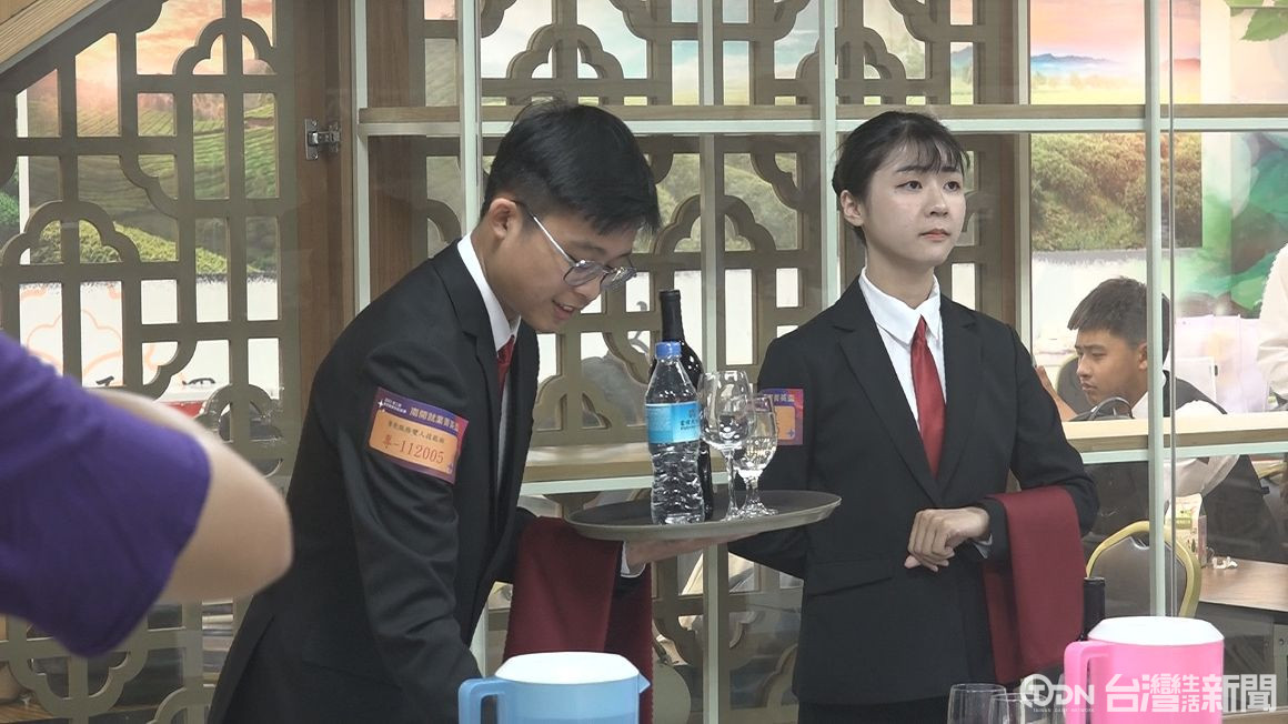 南開就業盃餐旅服務技能競賽第二年舉辦,來自全國各地大專和高中職選手,將近百人參與交流,持續針對餐旅需要的基本技能,設計平台,讓學生有驗證所學的機會