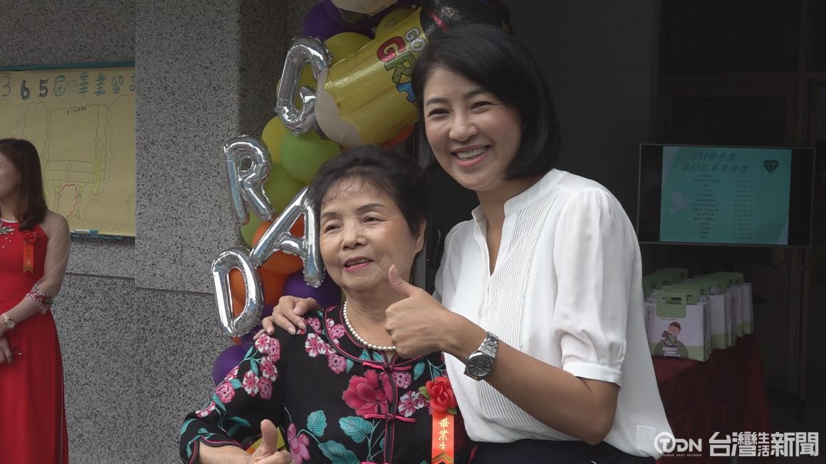 ▲看到八十歲的阿嬤帶頭,同班七位新住民一起畢業,南投縣長許淑華非常肯定他們的認真讀書的精神/記者 范宏坤 攝