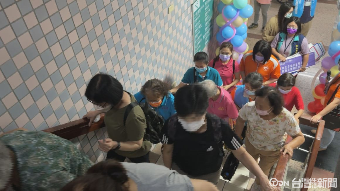 ▲竹山秀傳幸福階梯,百人爬樓梯顧健康/記者徐旻鈺 攝