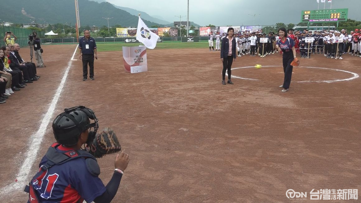 ▲第一屆U15亞洲盃女子壘球賽開幕典禮,南投縣長許淑華擔任開球嘉賓,他勉勵國家隊打出好成績/記者 范宏坤 攝