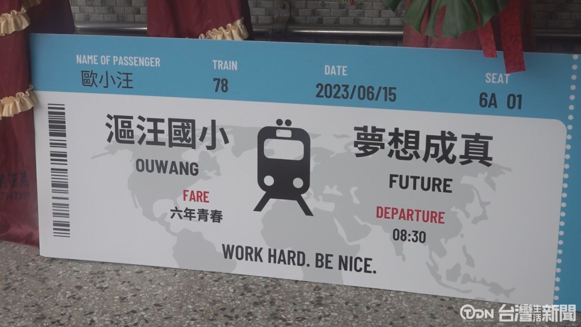 ▲將軍漚汪國小今年畢業典禮的主題夢想列車由師生共同來設計的主題希望畢業生能夠拿著這張屬於自己的車票帶著六年的學習經驗迎向未來/記者鐘依憓攝