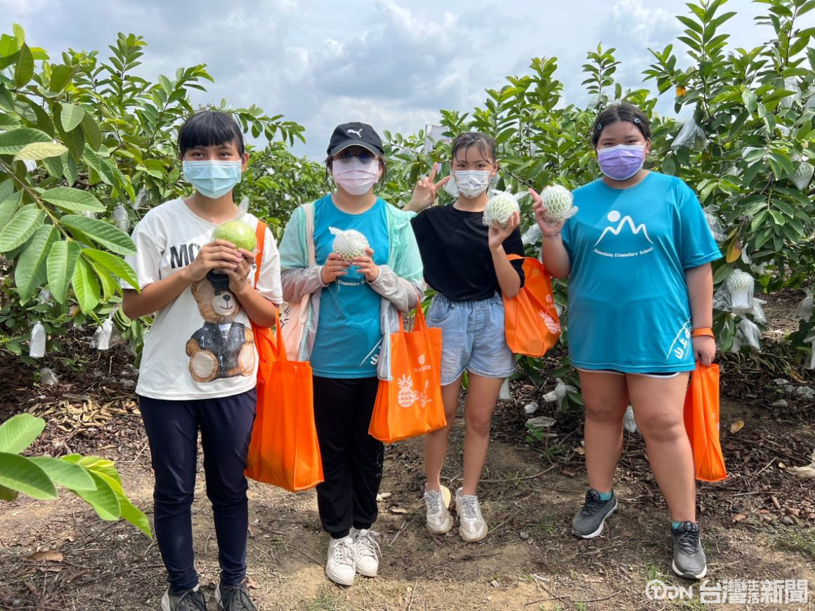 ▲山上區農會日前舉辦食農教育,邀請山上國小學生到果園摘芭樂。