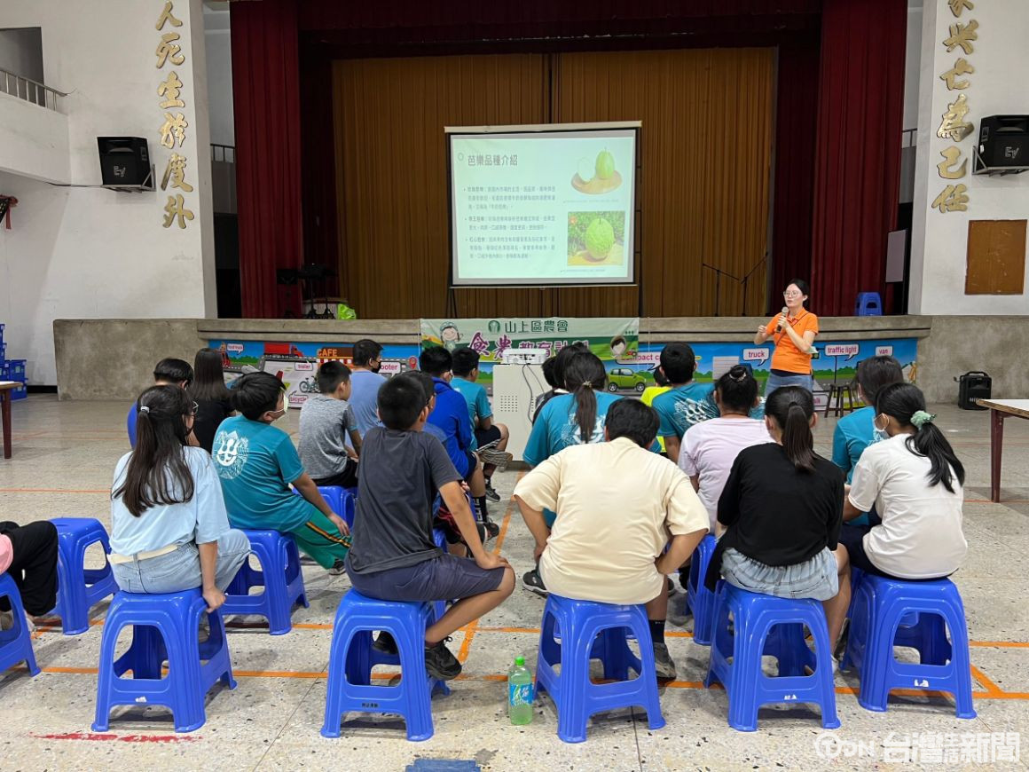 學生在果園當中,摘已經成熟的芭樂,這是日前山上區農會舉辦的食農教育活動,讓學生可以認識家鄉的農產品,也可以實際感受農夫的辛苦,除了果園的體驗,也在校內安排闖關遊戲,讓學生透過趣味的關卡認識芭樂的知識。