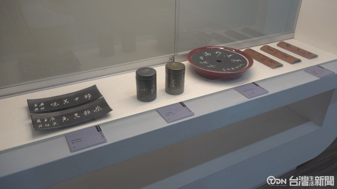 藝術家吳德賢表示,擔任公職30多年,從名間鄉戶政事務所主任來退休,自修書法勤練不中斷,除了精通行草、篆刻,他也以不同的材質創作,陶、木、竹甚至螺溪石都成為一刀刻創作的素材。