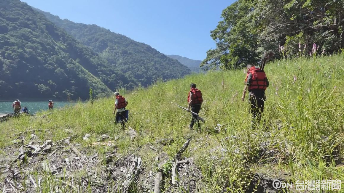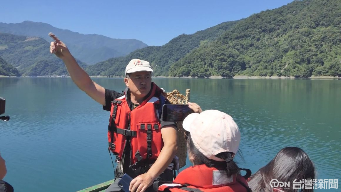 ▲賽德克巴蘭社族人,搭船前往霧社水庫對岸祖居地祭祖尋根,耆老同時說明舊部落的地理環境位置。/記者 王昭聖 攝
