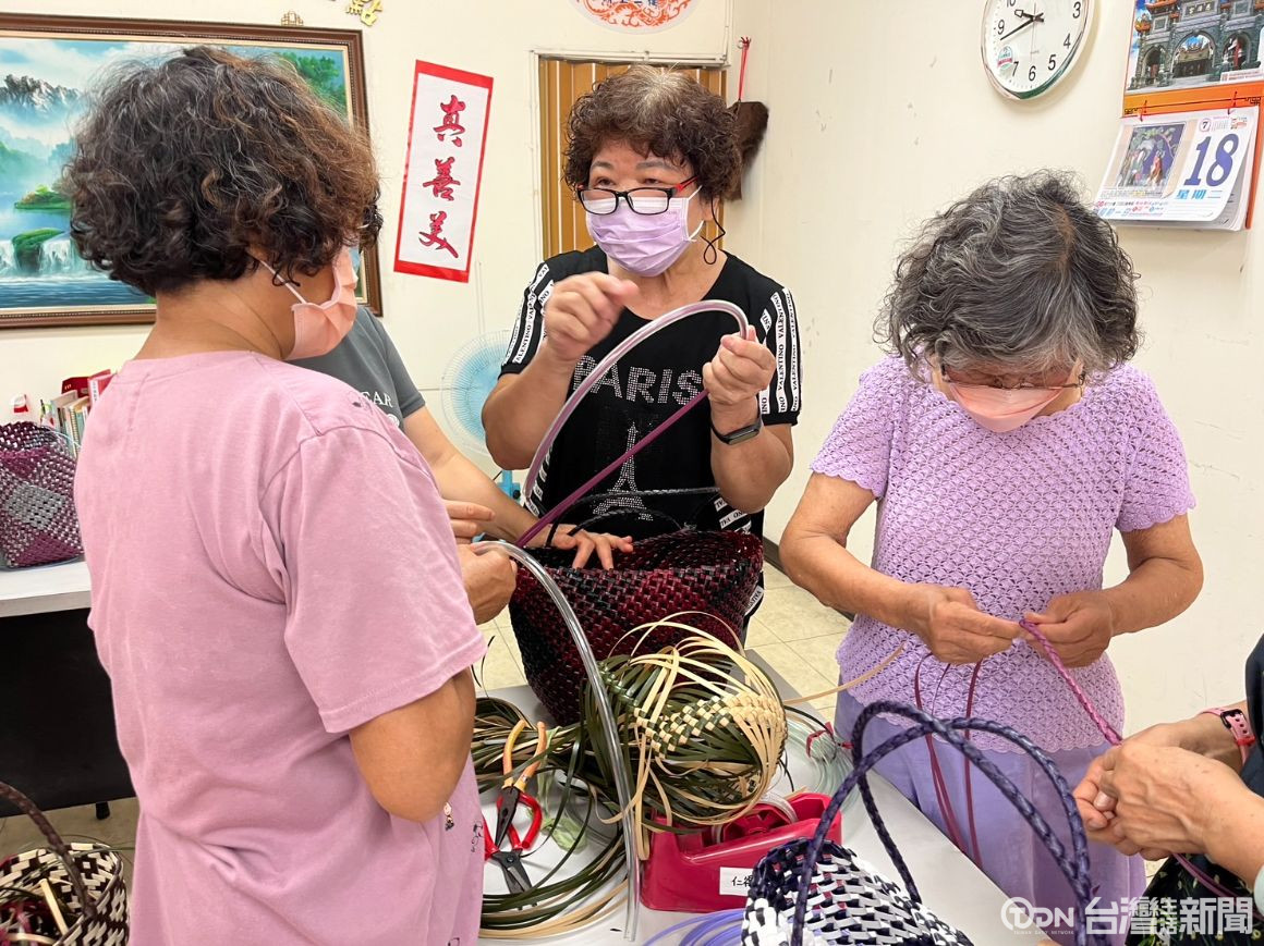 ▲這次的課程是教導長輩如何編織包包。