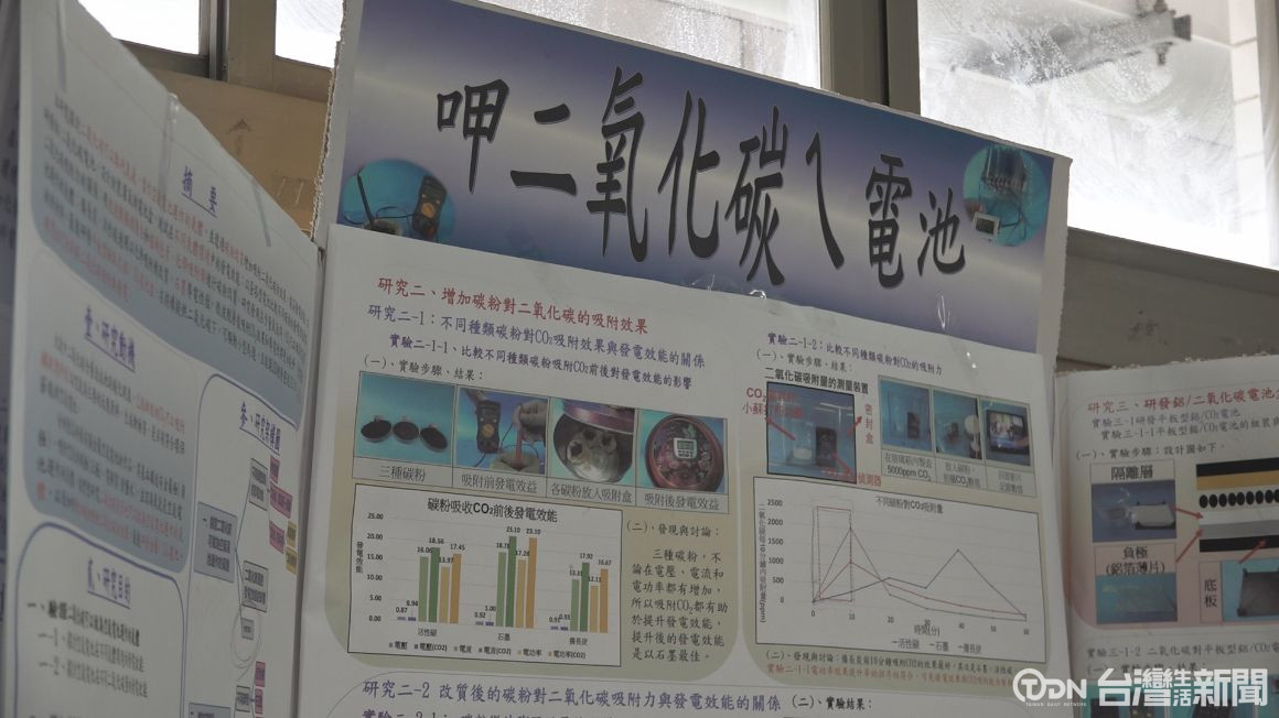 這次得獎作品由學生姚奕丞、陳韻淇、陳宥甄三位小朋友,是以「呷二氧化碳ㄟ電池」為題目,師生從環境議題發想,為了減少溫室氣體的危害,希望將排放的CO2捉取並應用,以二氧化碳做為電池運作的氣體,研發出二氧化碳電池。
