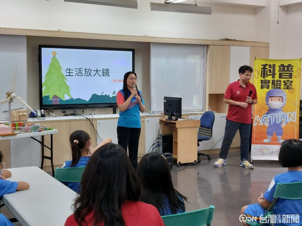 ▲台積電慈善基金會的志工前往左鎮國小校園,透過日常當中能源的知識,帶學生進行趣味的實驗。