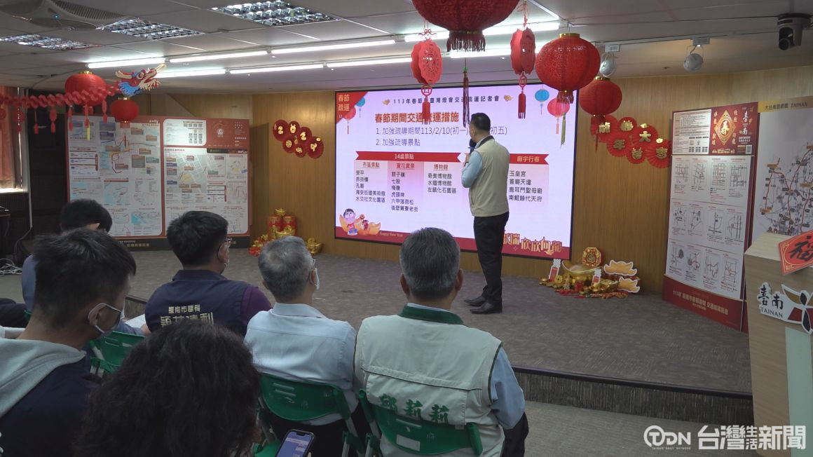 ▲臺南市政府公布春節期間各大景點研擬交通疏運計畫 臺南市副市長 葉澤山主持113年臺灣燈節及春節連續假期記者會讓市民及遊客使用大眾工具及活動接駁車規劃輕鬆暢遊臺南/記者 陳嘉升攝