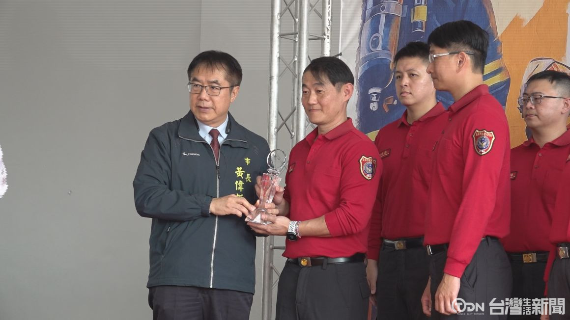 ▲臺南市政府消防局辦理119消防節「向城市英雄說出心裡話」暨績優消防人員頒獎活動市長黃偉哲出席消防節活動表示感謝消防人員全年的辛勞以及付出親自頒獎表揚29位績優消防人員/記者 陳嘉升攝