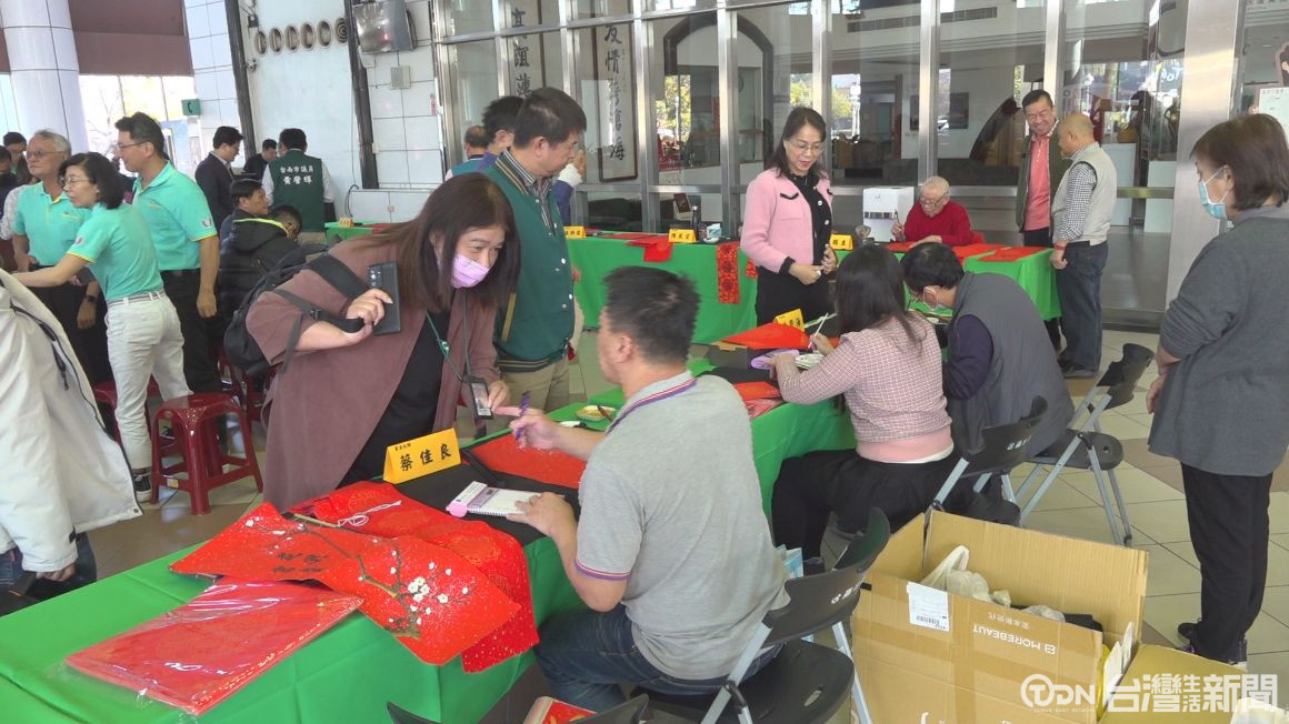 今日的臺南市議會充滿過年的歡樂氣氛,臺南市議員蔡麗青邀請書法大師張炳煌和王錫圭到現場寫春聯,同時還設有茶席,讓現場充滿茶香跟書香。