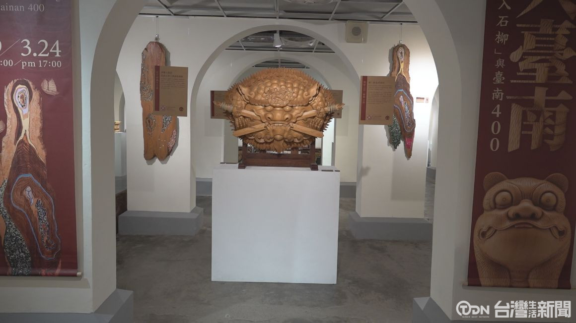 茄苳入石柳的鑲嵌技法是府城文化特色,一直獲得府城工藝獎的木雕大師劉進文將展出三十多件作品,其中在安平的劍獅,也成為臺南人的文化圖騰之一。