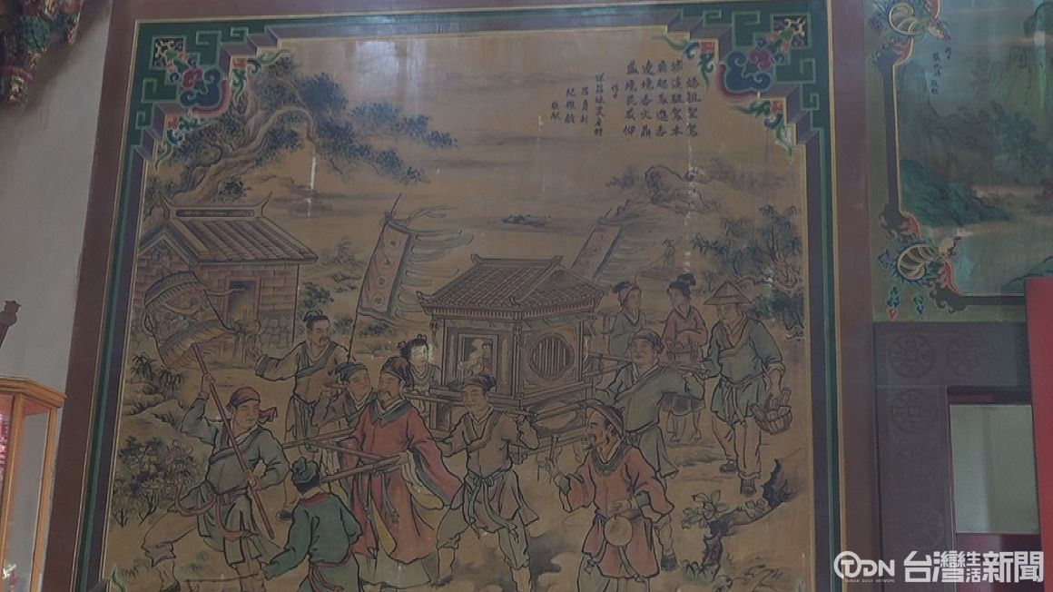 ▲廟方為了讓民眾了解廟宇的歷史,也將廟的沿革畫在牆上。記者 謝沂辰/攝