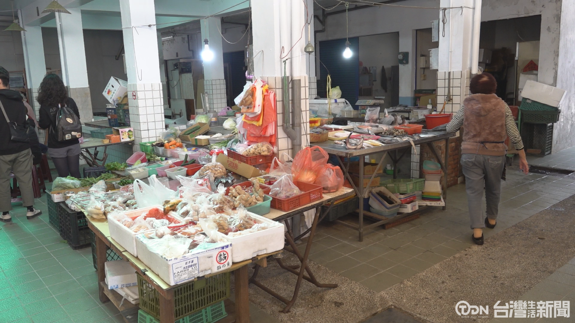 ▲左鎮的公有市場,因為人口流失,現在僅剩三個攤販在市場內經營。