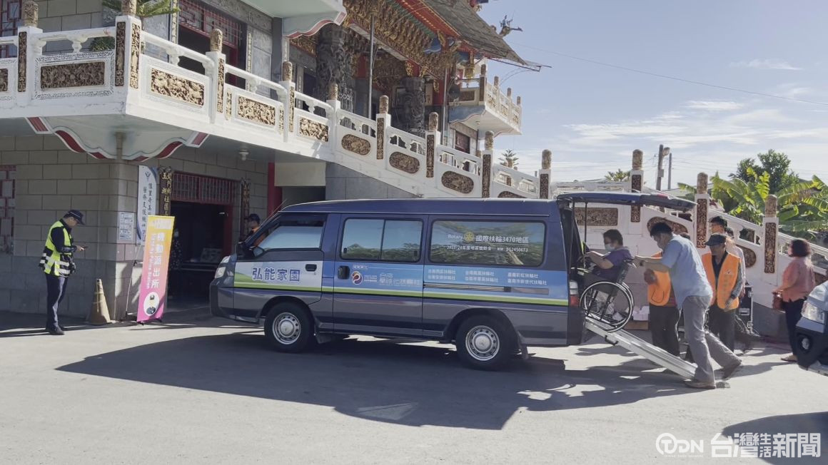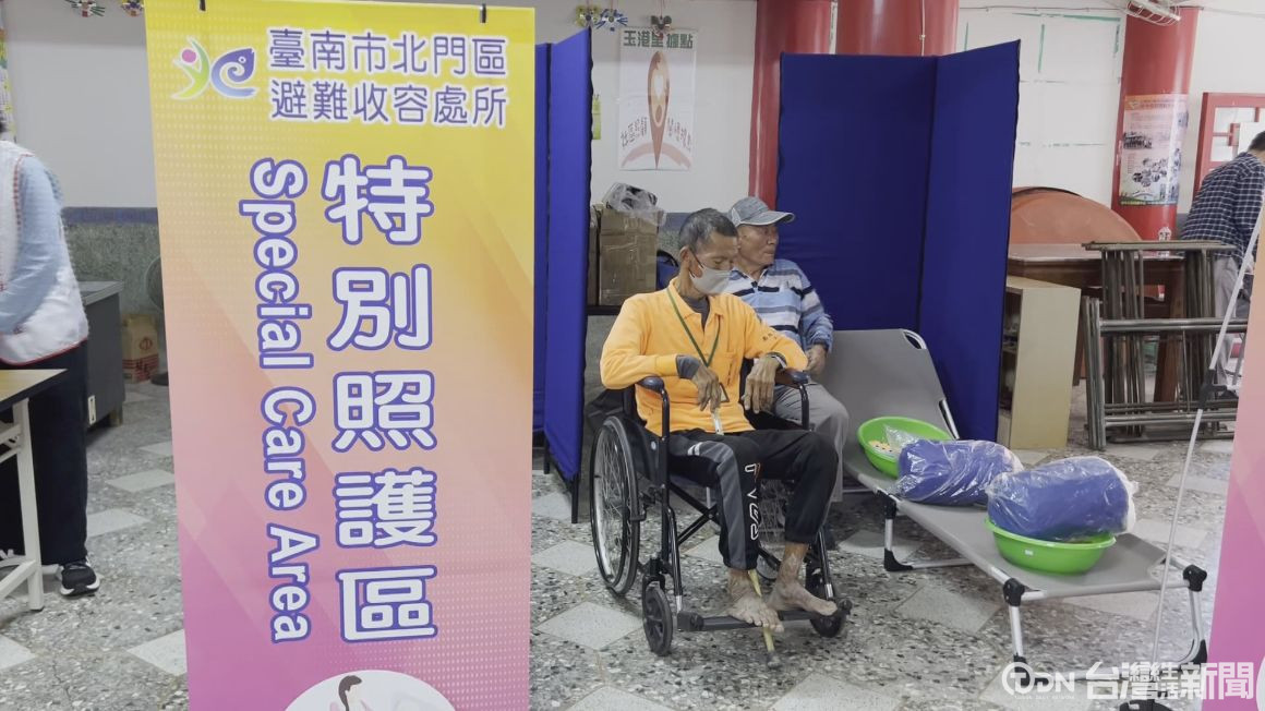 志工將長輩推上車,再撤離到避難的地方,各組人員進行救災工作分配,這是北門區公所為了讓在地民眾有防災的意識,所進行的災害演練。