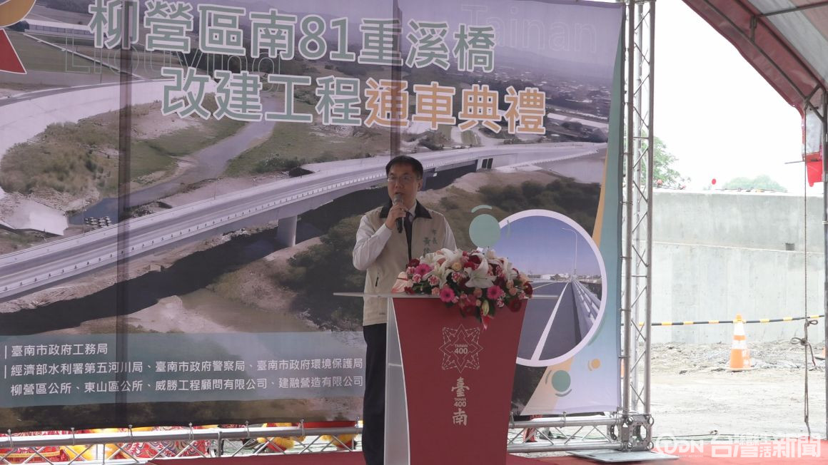 南81線重溪橋是臺南柳營區和東山3區來往的重要道路,過去因為橋的長度和高度不足,每一次遇到大雨汛期的時候都需要封橋,為了要改善用路安全,中央和地方投入將近兩億的經費,經過兩年的施工,18號上午正式進行通車典禮。