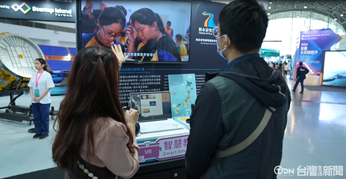 ▲新永安有線電視透過5G網路的建置,與故宮博物院合作,為臺南偏鄉學校帶來精彩的線上展覽,在這次的2024高雄智慧城市展向民眾介紹。